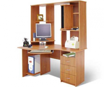 Эргономичный дизайн делает КС-10.01 не только удобным рабочим местом, но и стильным элементом интерьера современного человека. КС-10.01 рассчитан на использование жидкокристаллического монитора, расположение которого в данной модели может быть как левосторонним, так и правосторонним. Стол оснащен двумя дополнительными полками для документов, а также вместительной тумбой с тремя ящиками. В боковой нише помещается дополнительное оборудование (принтер, сканер), а также рабочая документация. Полка для монитора, на которой расположить еще и колонки, вынесена над столешницей, что позволяет сэкономить рабочее место на столе, а хромированные опоры, с помощью которых достигается устойчивость полки, придают модели стильный современный вид. Полка под клавиатуру крепится на шариковых направляющих, которые позволяют владельцу стола самостоятельно изменить угол положения полки относительно всей конструкции. Стол дополнительно оснащен вращающимся СД-архивом.
